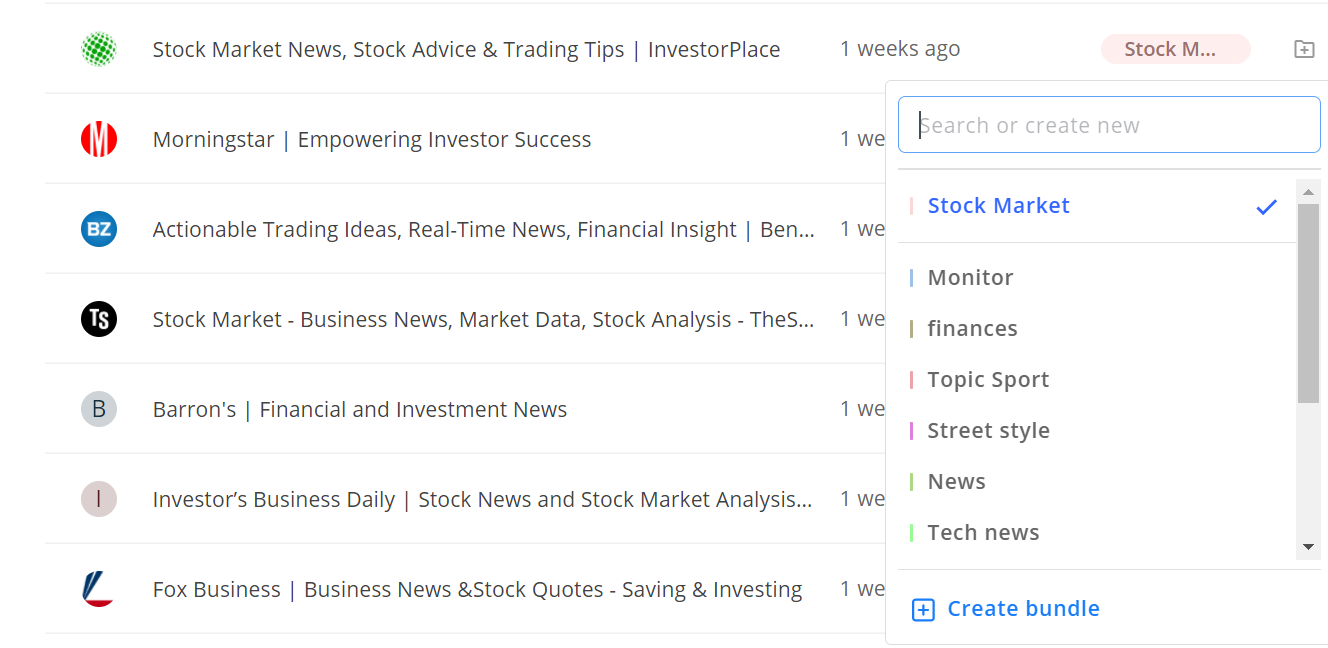 3. That’s it! Your feed is now linked to the selected bundle. Next to each feed, you will see the name of its associated bundle.